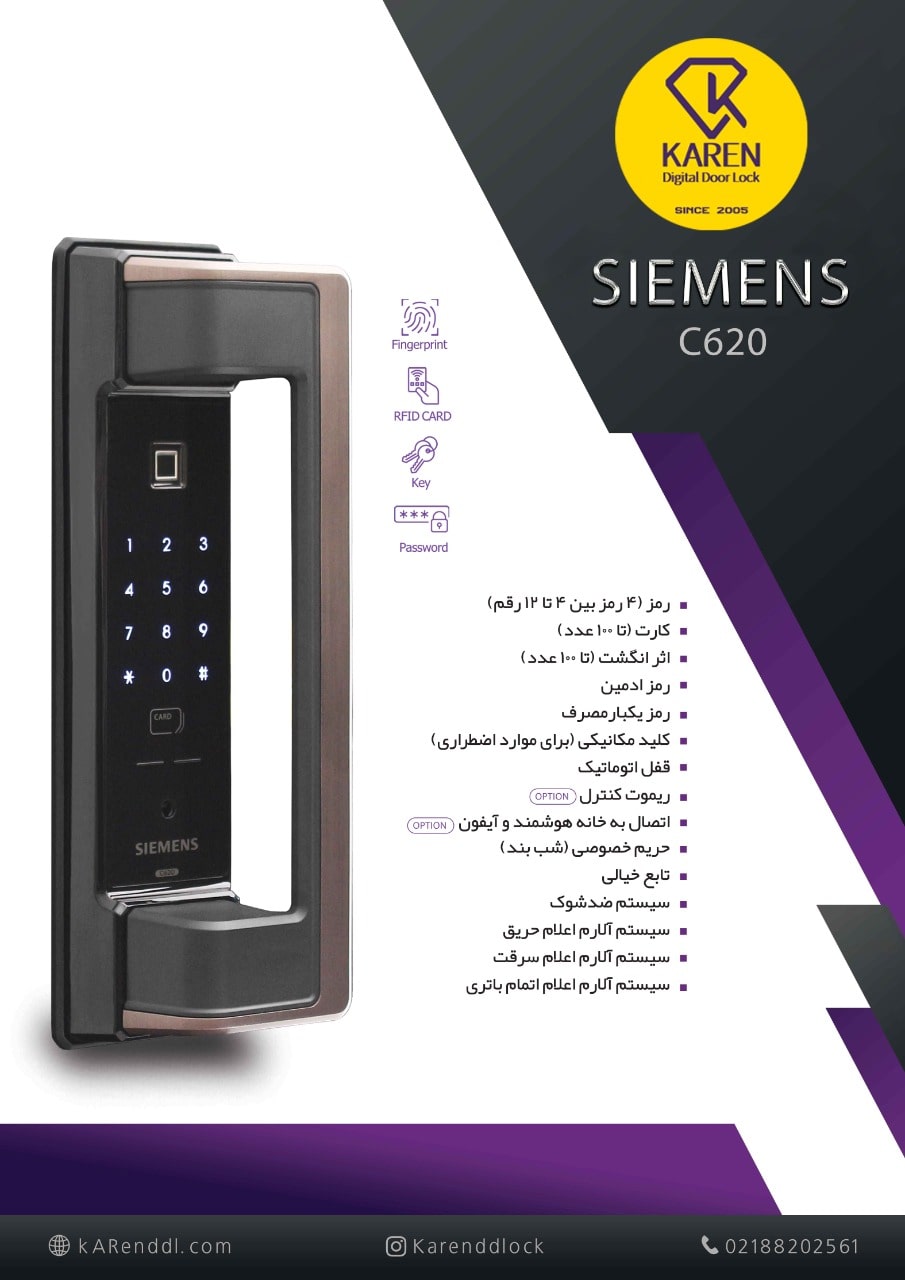 ویژگیهای امنیتی قفل هوشمند زیمنس C620